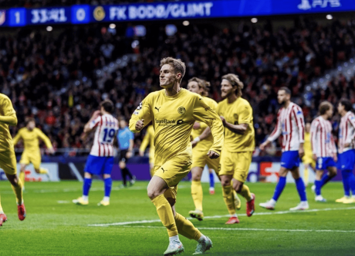 1月21日,博德闪耀在主场3-1爆冷击败曼城。8天后,他们今日做客挑战马竞。在先丢一球的情况下,博德闪耀连进2球,实现逆转。最终,他们2-1击败了马竞。